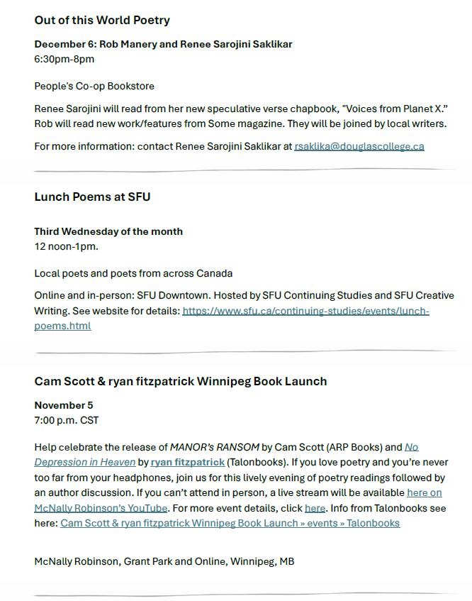 Subscribe to our newsletter! Subscribe to our newsletter! Subscribe to our newsletter! Subscribe Sign up with your email address to receive news and updates from poetry in canada. Email Address Sign Up We respect your privacy. Thank you! Newsletter ArchiveDownload pdf for accessibility:Newsletter 3Newsletter 2Newsletter 1